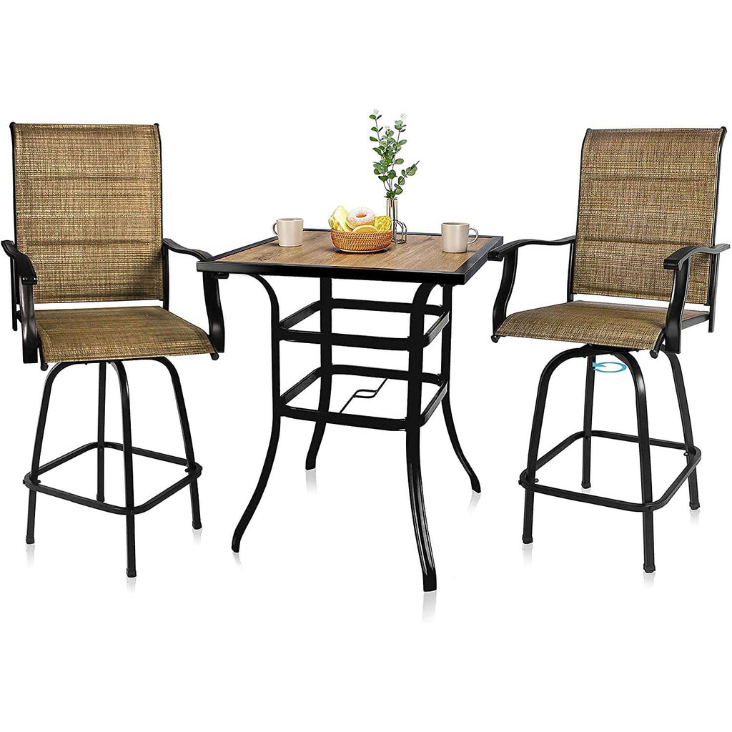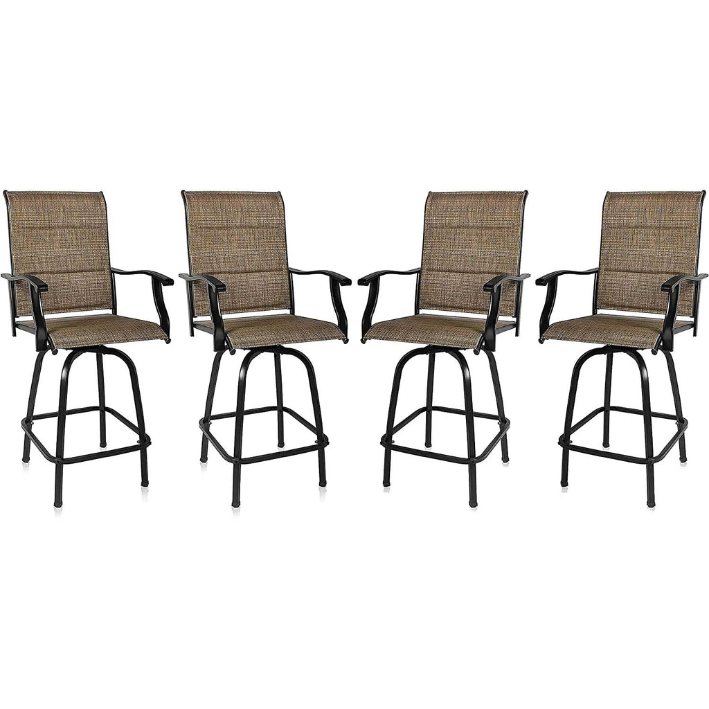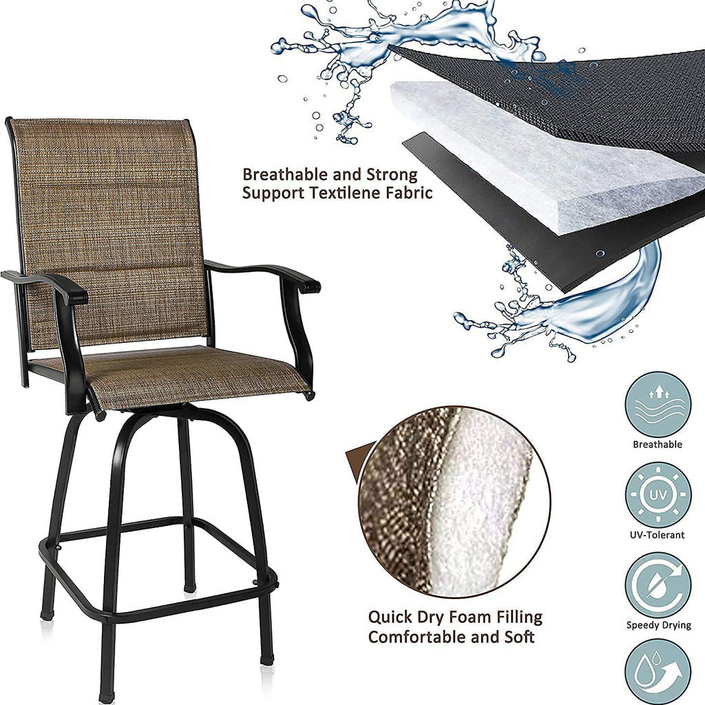 Bigroof Patio Bar Swivel Stools with High Back and Armrest, Padded Textilene 360° Swivel Chairs with Wook Like Top Table, Outdoor Furniture Set (2/4 Chairs)