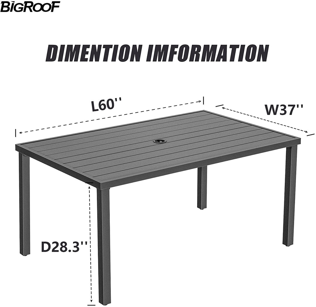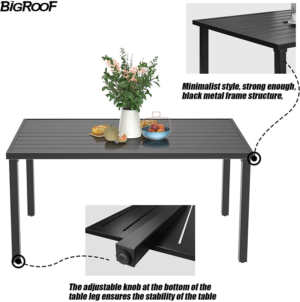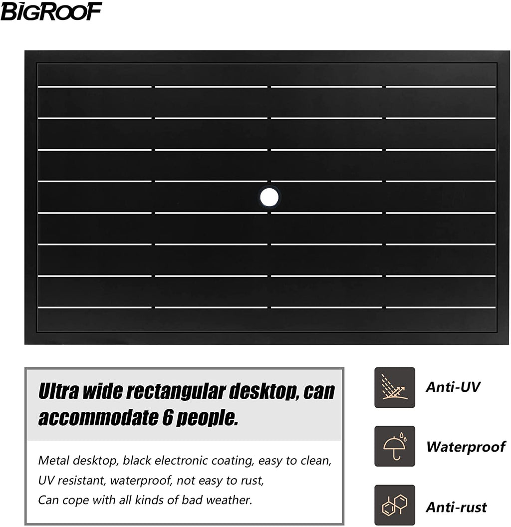 Bigroof Rectangle patio dining table with 1.57" hole.Bring you a wider desktop . Use it with our chairs, bring you a wonderful life experience!