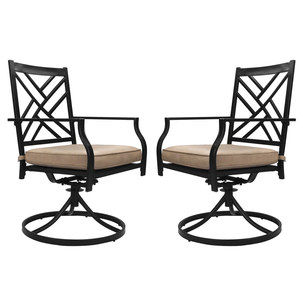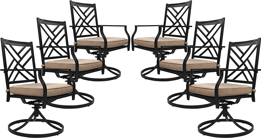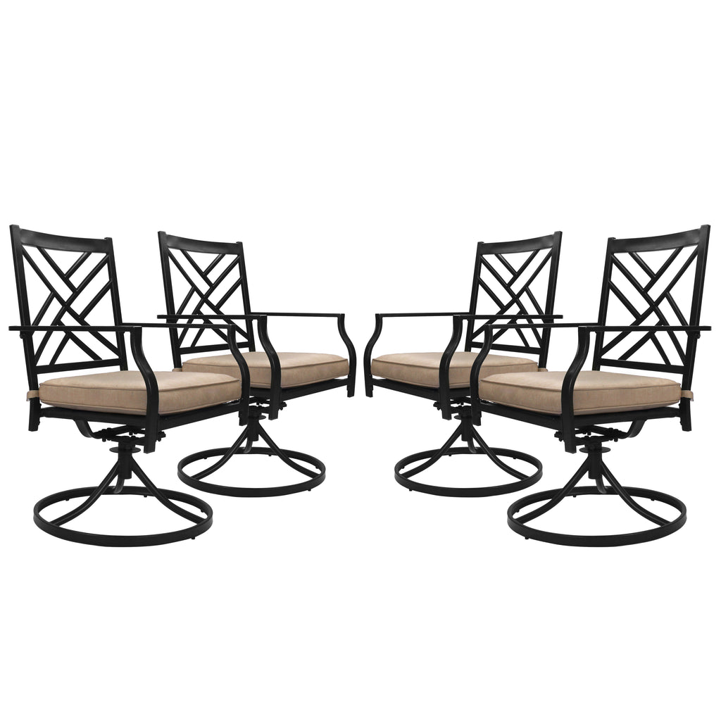 Bigroof Swivel Patio Chairs Outdoor Metal Steel-Framed Rocking Dining Chairs with Seat Cushion Backyard Furniture Sets for Patio, Lawn & Garden