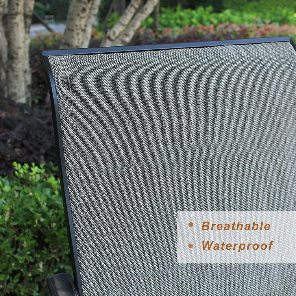 【Weather Resistant】Our patio chair set of 2 is made of a metal frame with powder coating, sturdy and stable, rust-resistant. High-quality textilene mesh fabric weather and UV resistant, waterproof, quick-drying. Easy to clean without special care.