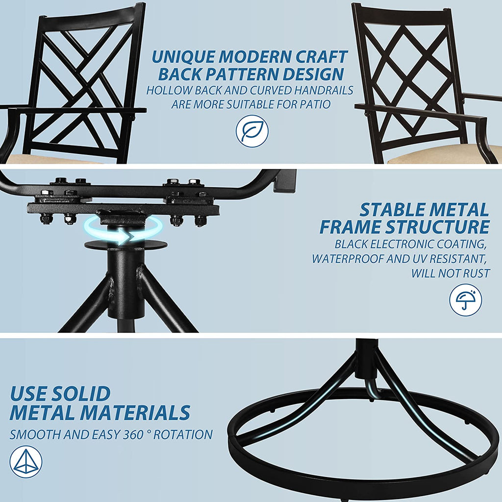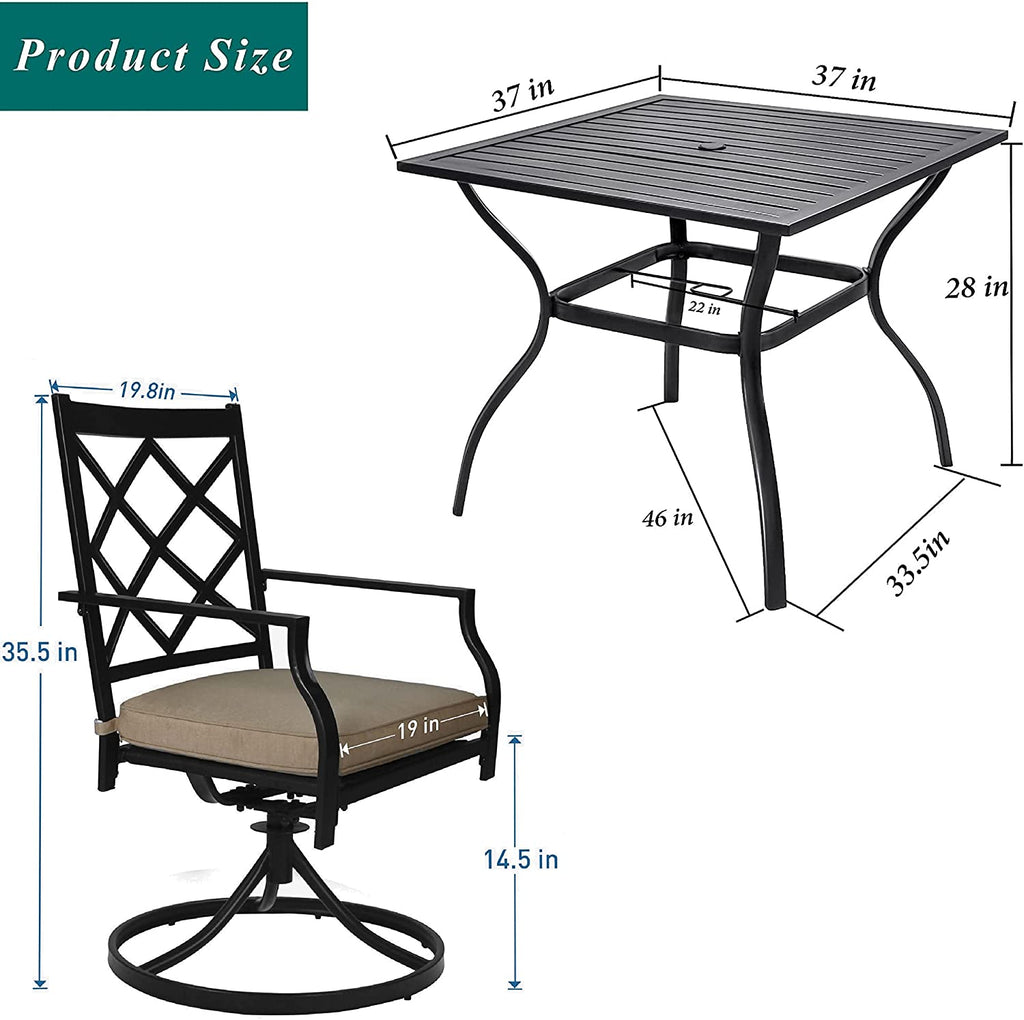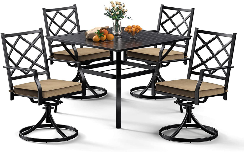 【5 Piece Patio Dining Set】Bigroof outdoor metal patio furniture set for 4 includes a square 37" metal steel slat patio dining umbrella table and 4 patio swivel chairs with cushions. Simple and elegant design perfectly integrates with your outdoor garden, backyard, pool, balcony, lawn and deck to create a relaxed and comfortable leisure environment for you and your family.